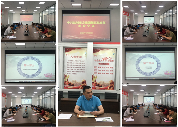 根據(jù)區(qū)黨工委要求,緊扣全面從嚴治黨新決策新部署,對照黨章黨規(guī)黨紀和憲法法律法規(guī)要求, 6月19日,東方集團第五黨支部在SK項目部一號會議室召開廉政黨課,支部書記王建旭主講。